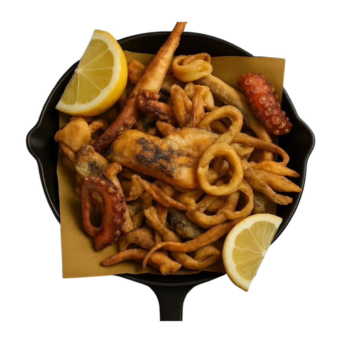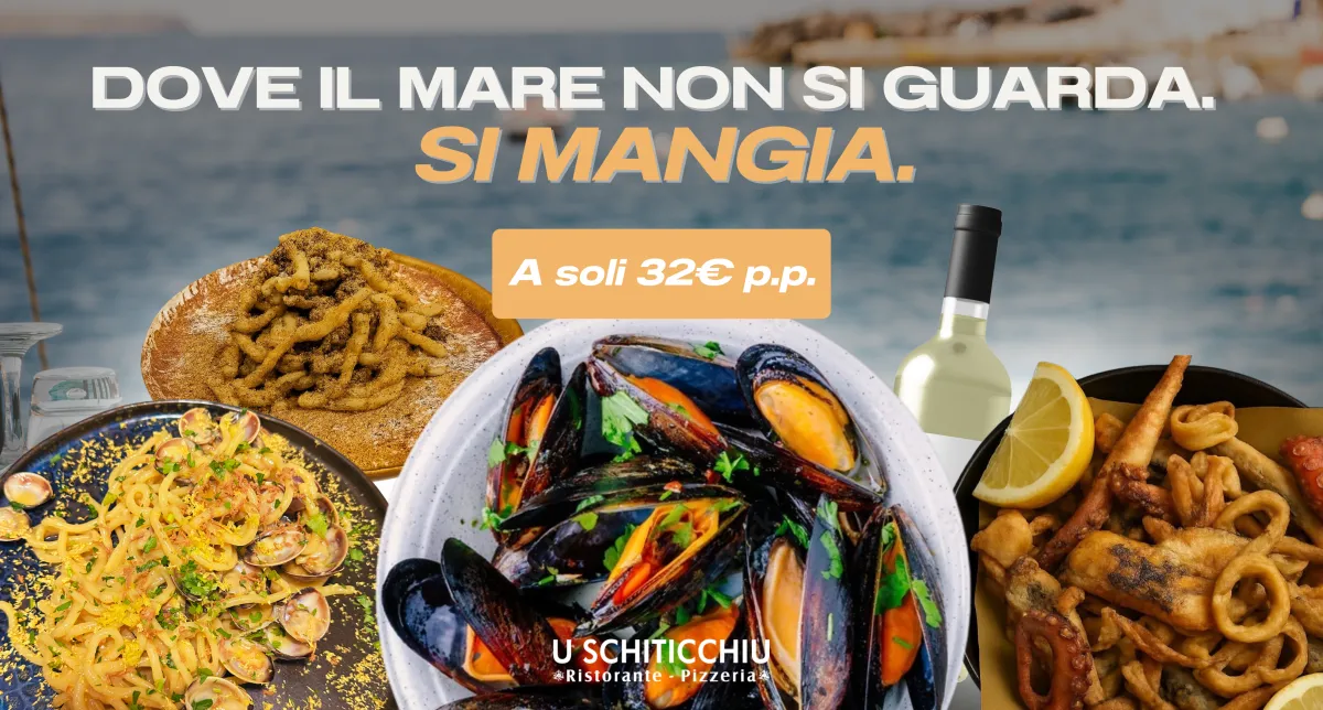 Un antipasto di zuppa di cozze calda e profumata, seguito da un primo a scelta tra il tonnarello “con vongole, bottarga e zeste di limone, oppure le busiate con sarde, finocchietto selvatico e pangrattato tostato. A seguire, una frittura del giorno che varia in base alle disponibilità del mercato: paranza, calamari o mista con polpo e cappuccetti. Il tutto accompagnato da una bottiglia di vino bianco ogni 2 persone e acqua inclusa a soli 32 euro per persona.